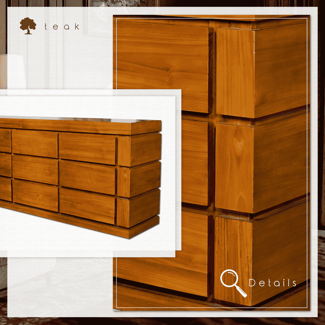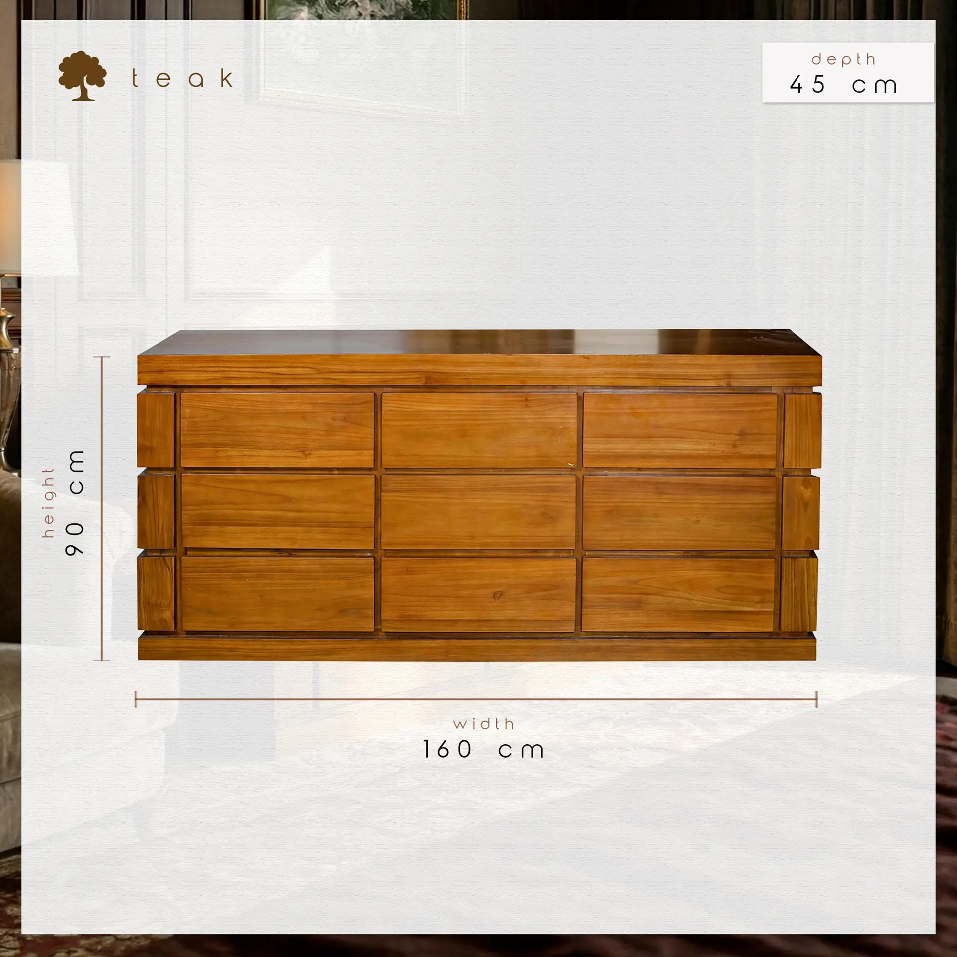 Gücün ve Düzenin Mimari Yorumu: Golden Geometry: 9 Çekmeceli Masif Tik ‘Blok’ Tasarım Konsol ve Şifonyer (160 cm)