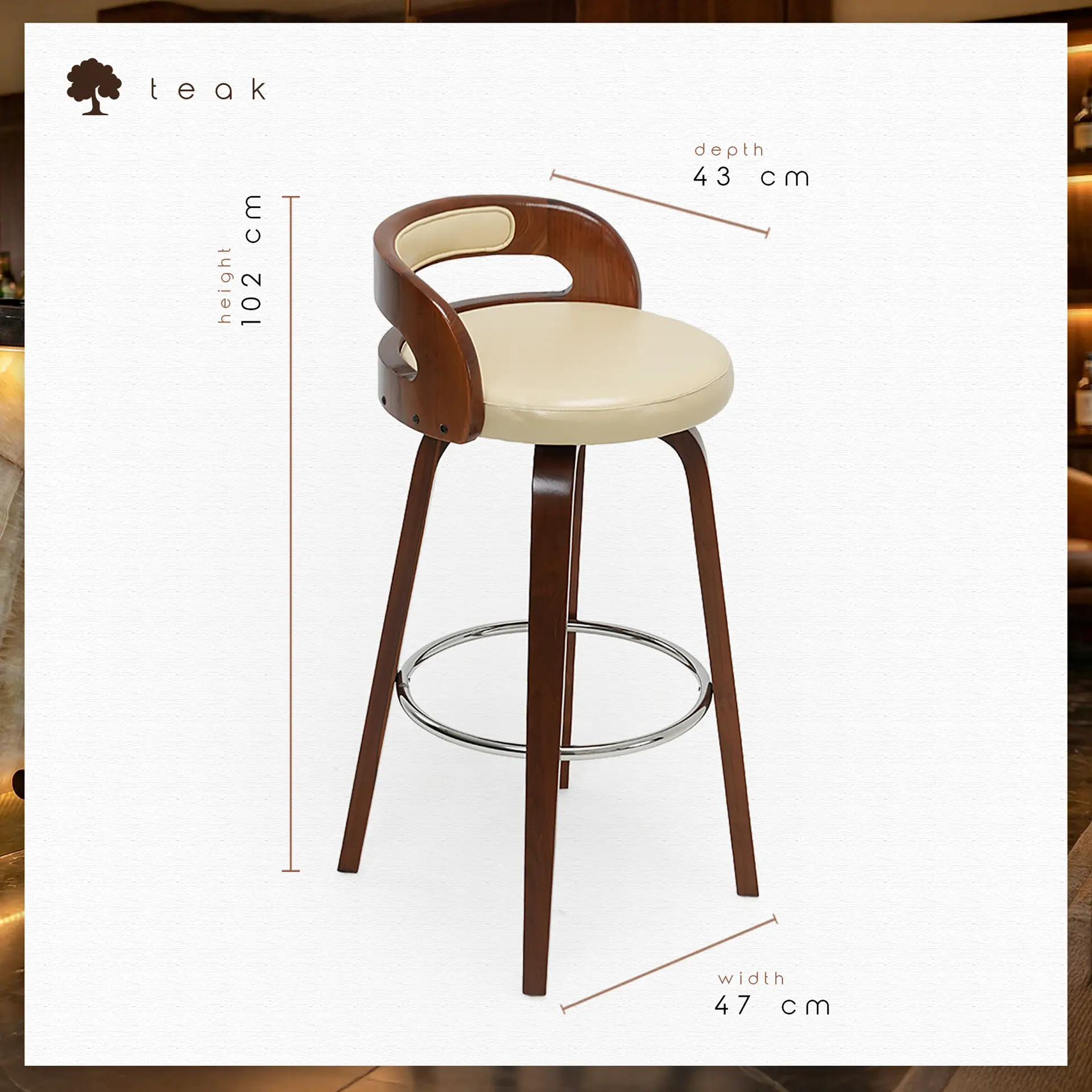 Mutfak Adalarının Yeni İkonu: Mirea Signature: Masif Tik Ağacı ve Krom Detaylı Modern Bar Sandalyesi