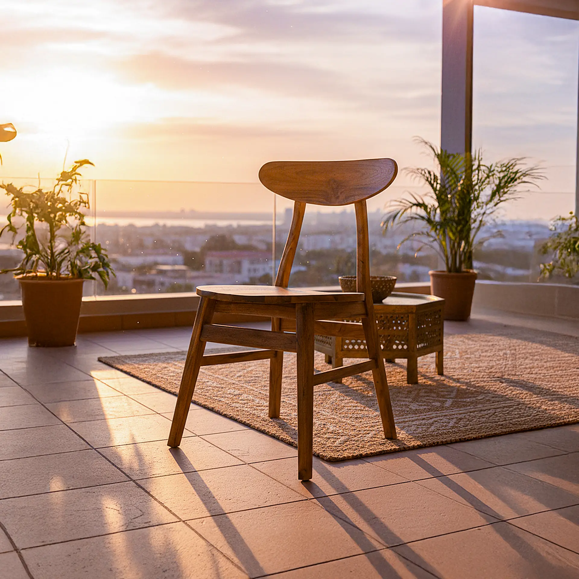 • Balkon ve Teras: Tik ağacının dayanıklılığı sayesinde, görseldeki gibi kapalı balkonlarda veya kış bahçelerinde keyif köşesi oluşturur.