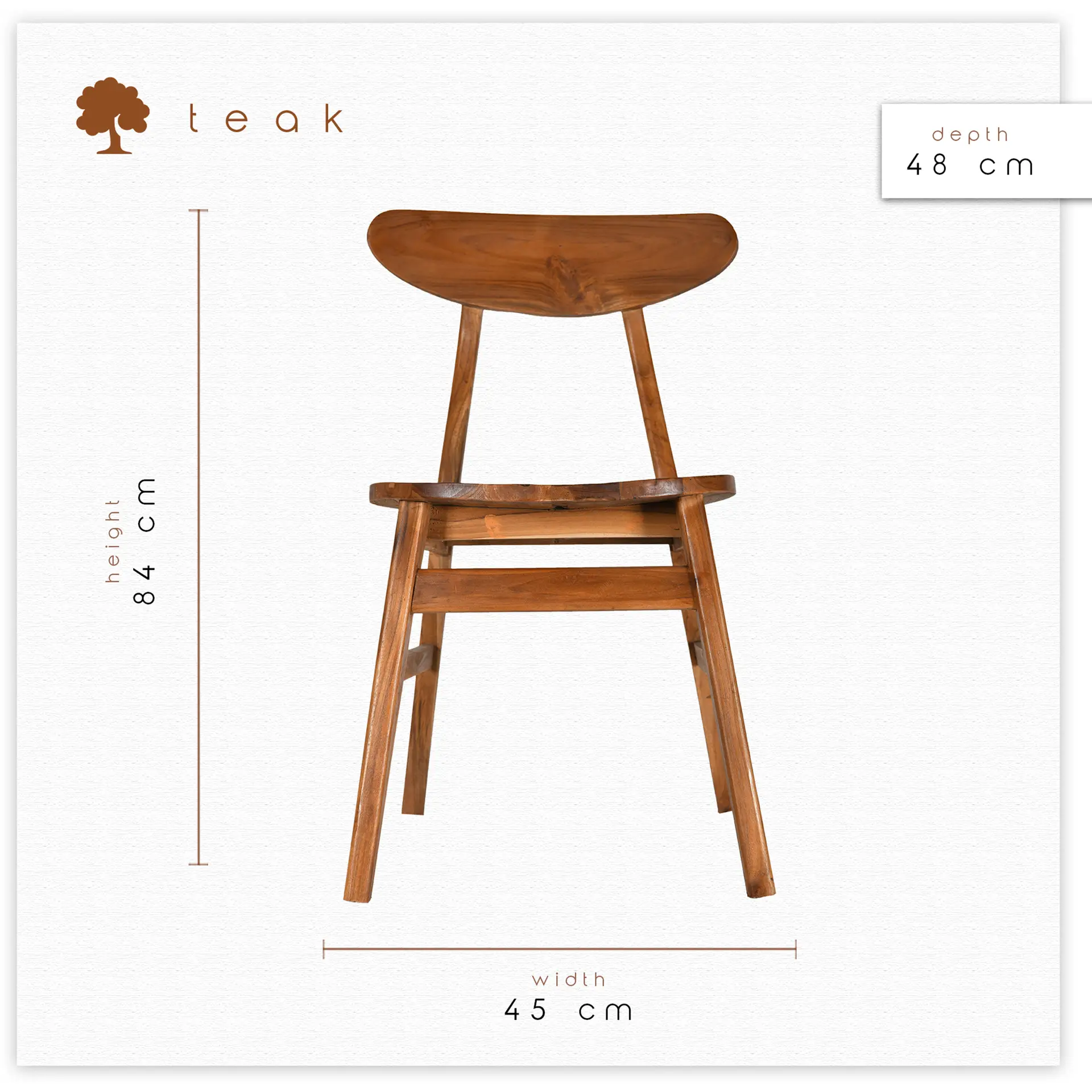 • Nordic Arc: Masif Tik Ağacı Yarım Ay Sırtlı Retro Yemek Sandalyesi