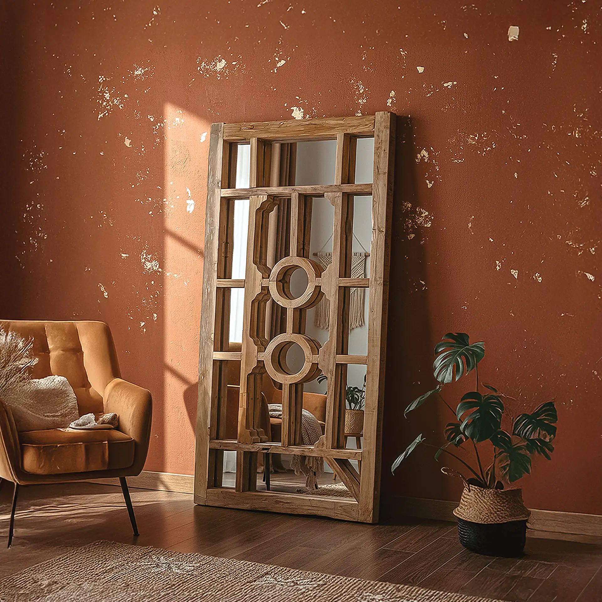 Evinizin duvarlarını yıkmadan genişletmenin en estetik yolu… Rustic Gateway, sadece kendinizi göreceğiniz bir ayna değil, bulunduğu mekana mimari derinlik ve yaşanmışlık hissi katan devasa bir dekorasyon öğesidir. Eski çağ tapınak kapılarından ve geleneksel pencere kasalarından ilham alan bu tasarım, ham ahşabın sıcaklığını camın ferahlığıyla buluşturuyor.