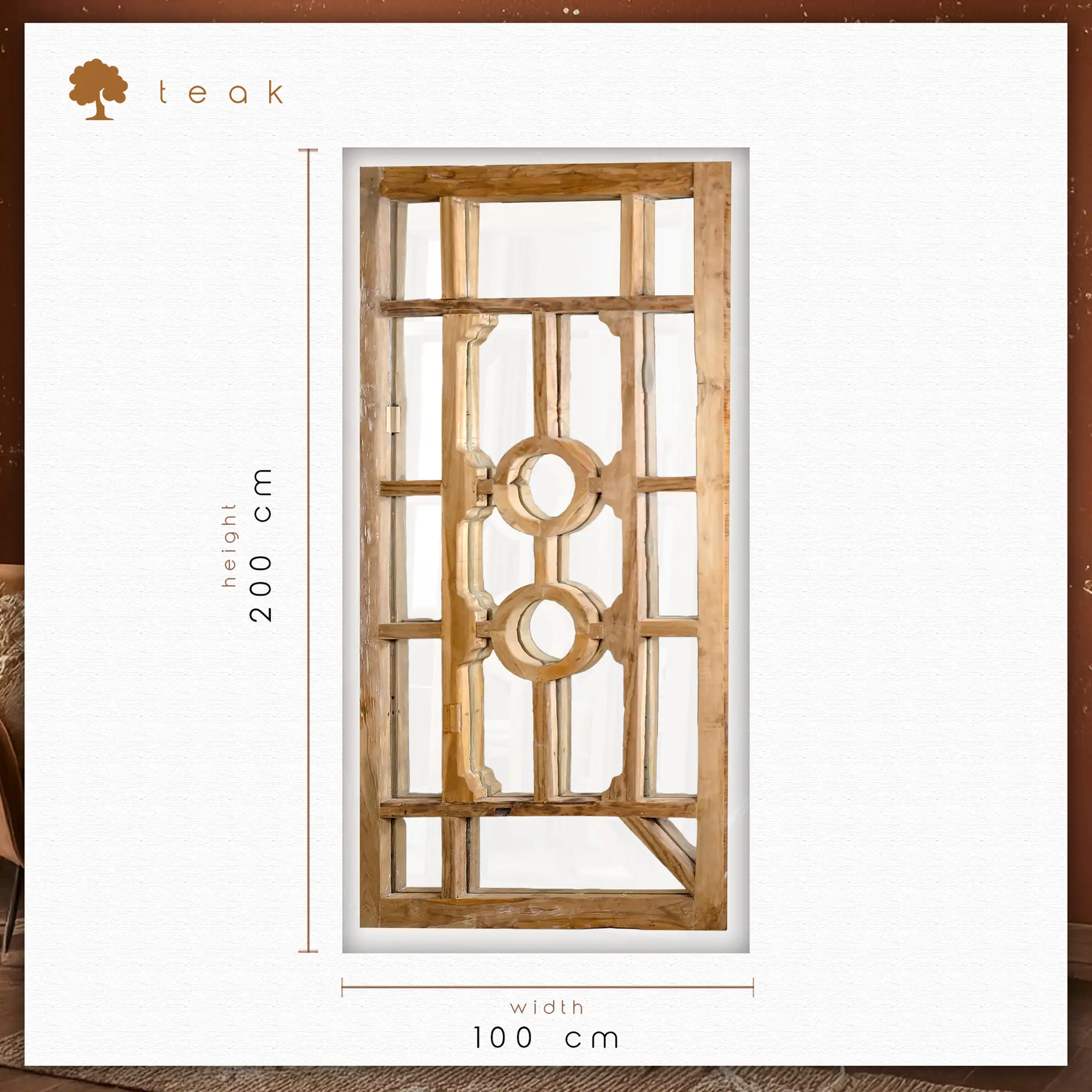 Mekanınızda Tarihe Açılan Bir Pencere: Rustic Gateway: Masif Tik Ağacı ‘Antik Kapı’ Tasarımlı Dev Boy Ayna (200 cm)