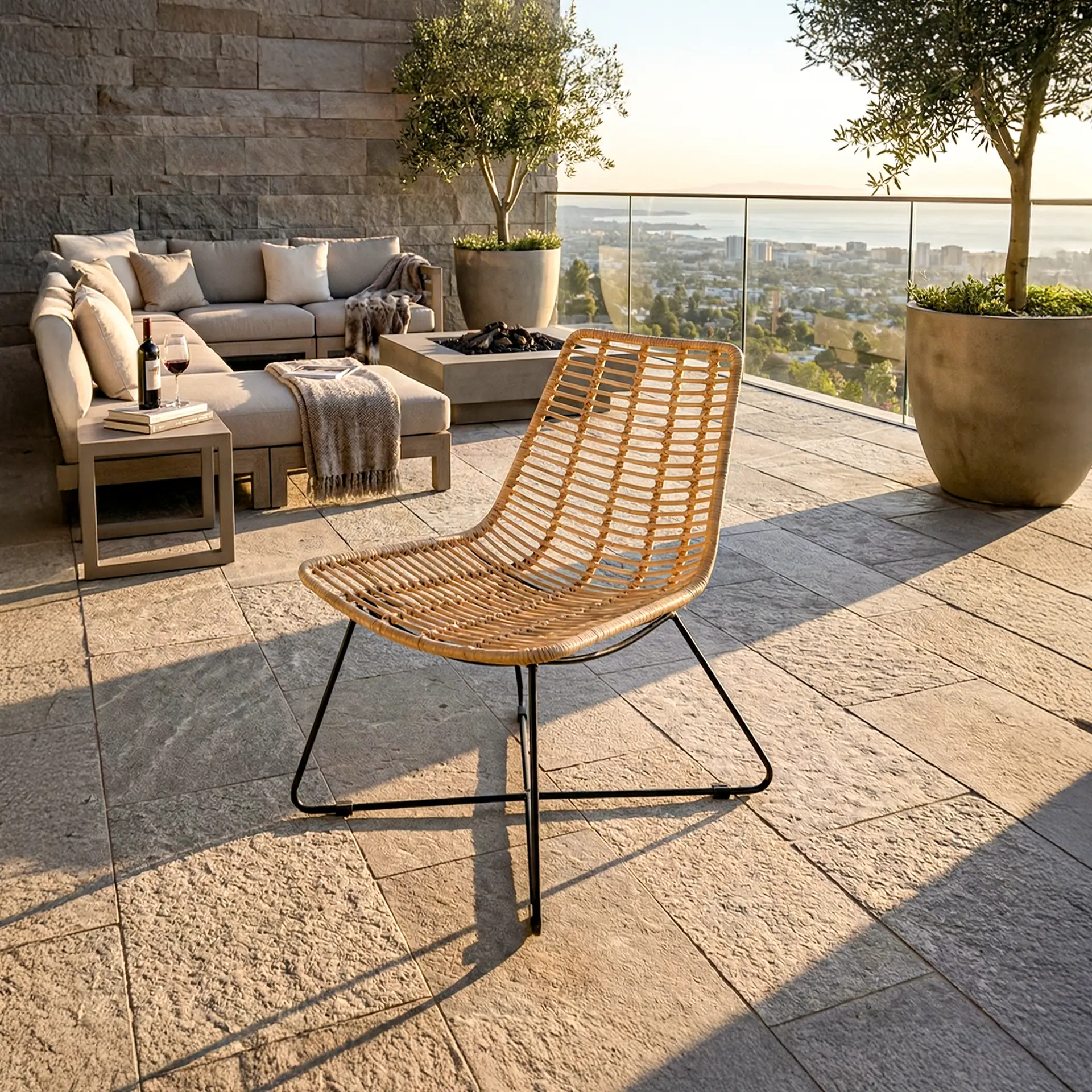 • Summer Breeze: Doğal Rattan Örgülü ve Metal Ayaklı Modern Lounge Sandalyesi